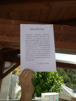Por un lado, se hace un uso impropio de palabras, cuyo significado ignora el escribidor del bando. Sin ánimo de ser exhaustivo, tilda de “conductas incívicas” el comportamiento veraniego de los niños. Y yo me pregunto: ¿Que los niños estén y jueguen por las calles o en el atrio de la iglesia, que consuman pipas y chucherías en los espacios públicos son “conductas incívicas” o lo propio de la edad y del contexto veraniego en el que se encuentran? Creo que el escribano del bando podría tener demencia senil y ha olvidado lo que él hacía cuando era niño. Además, al escribir “rallantes”, el escribiente confunde los verbos “rallar” (desmenuzar algo restregándolo contra un utensilio metálico con agujeros de borde saliente) y “rayar” (lindar con algo o estar próximo a algo). Por otro lado, utiliza el término de “vandalismo” (devastación, destrucción, realización de acciones propias de gente salvaje y destructiva) para describir los inocentes y angelicales actos de los niños. Éstos ni se han comportado como salvajes ni han devastado o destruido nada en el pueblo… Y así hasta el final del breve bando: mala utilización de la lengua de Cervantes.